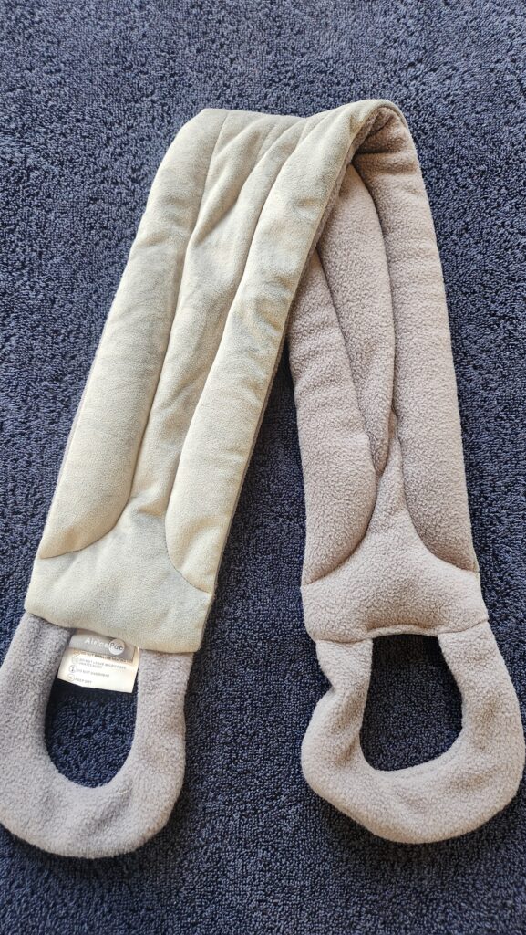 Seed or grain filled “socks” are heaven for sore muscle relief–no active traveler should be without one! The moist heat is really soothing, and they can do double duty by warming up your cold bed. However, they can be bulky and heavy. This AiricePac Microwave Heating Pad weighs just over 1 lb and has stitched chambers to keep the seeds well-distributed. According to the manufacturer, it’s filled with natural flaxseed, millet, and lavender. I’m not cutting mine open to verify, if you do, certainly let me know! Mine heats in 70-80 seconds in my home microwave and has a pleasant, light, lavender smell. It can also be frozen as a cold pack, but I prefer a making a traditional ice pack with a reusable plastic bag. As with any device, please read the instructions so you know how to use the heat pack safely!