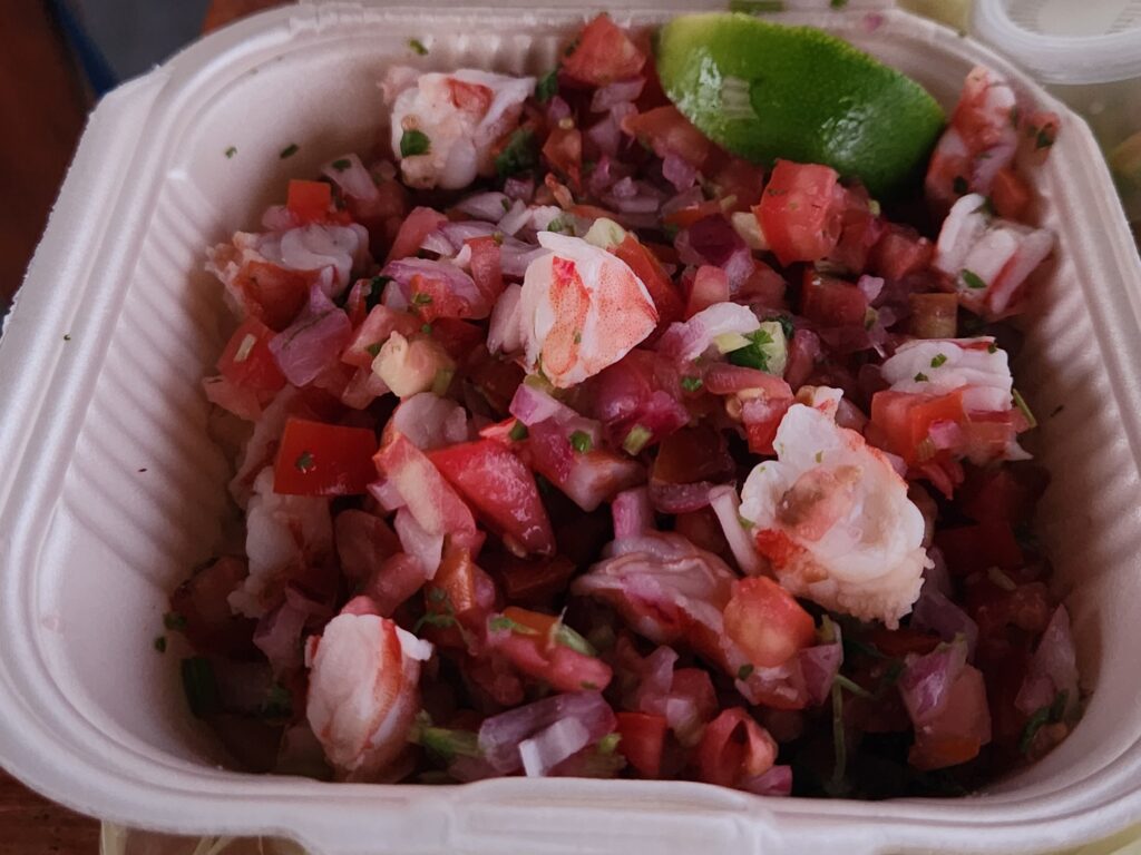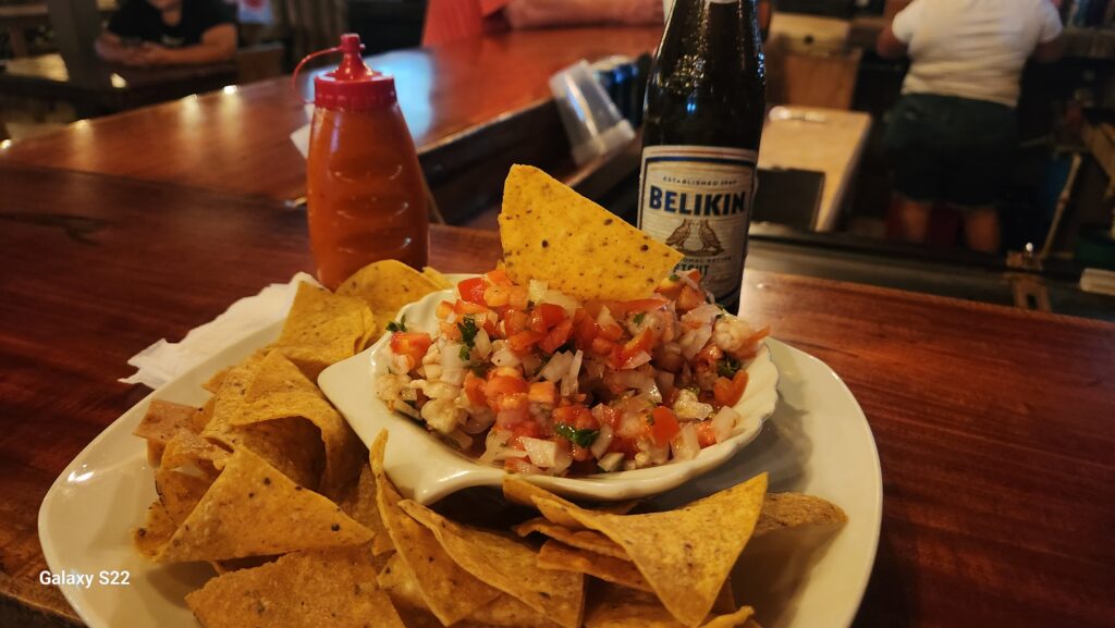 To me, a great ceviche is freshly made with sizeable chunks of seafood, a good ratio of seafood to vegetables, and a balance between the lime, cilantro, and spice. A just-ok ceviche may have a bland flavor or taste like the shrimp was pre-cooked on its own. Or, it may have an underwhelming amount of seafood that leaves you with just a sad bowl of pico de gallo at the end. A bad ceviche…well, the good news is that I never experienced an actual bad ceviche in Placencia!