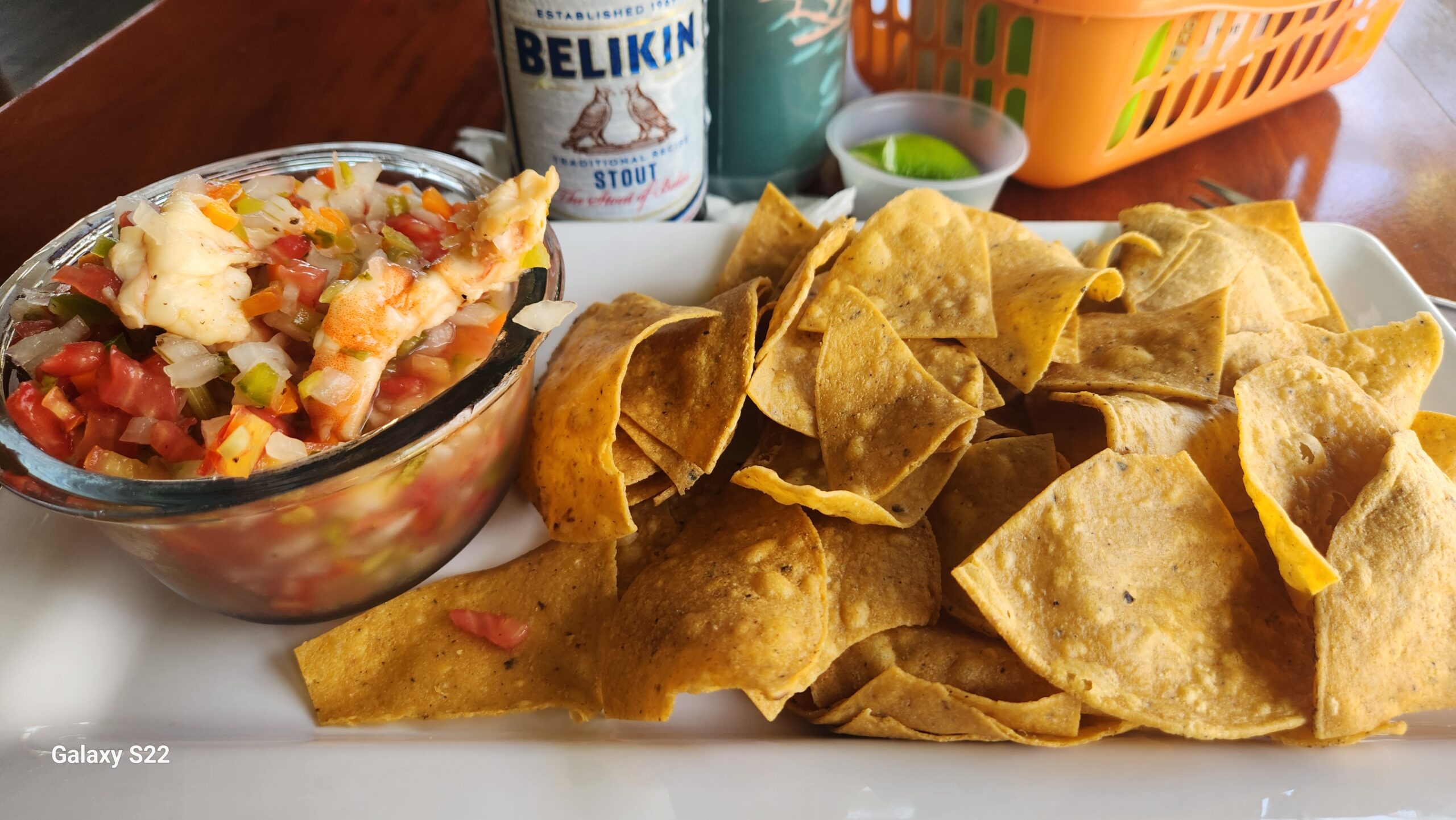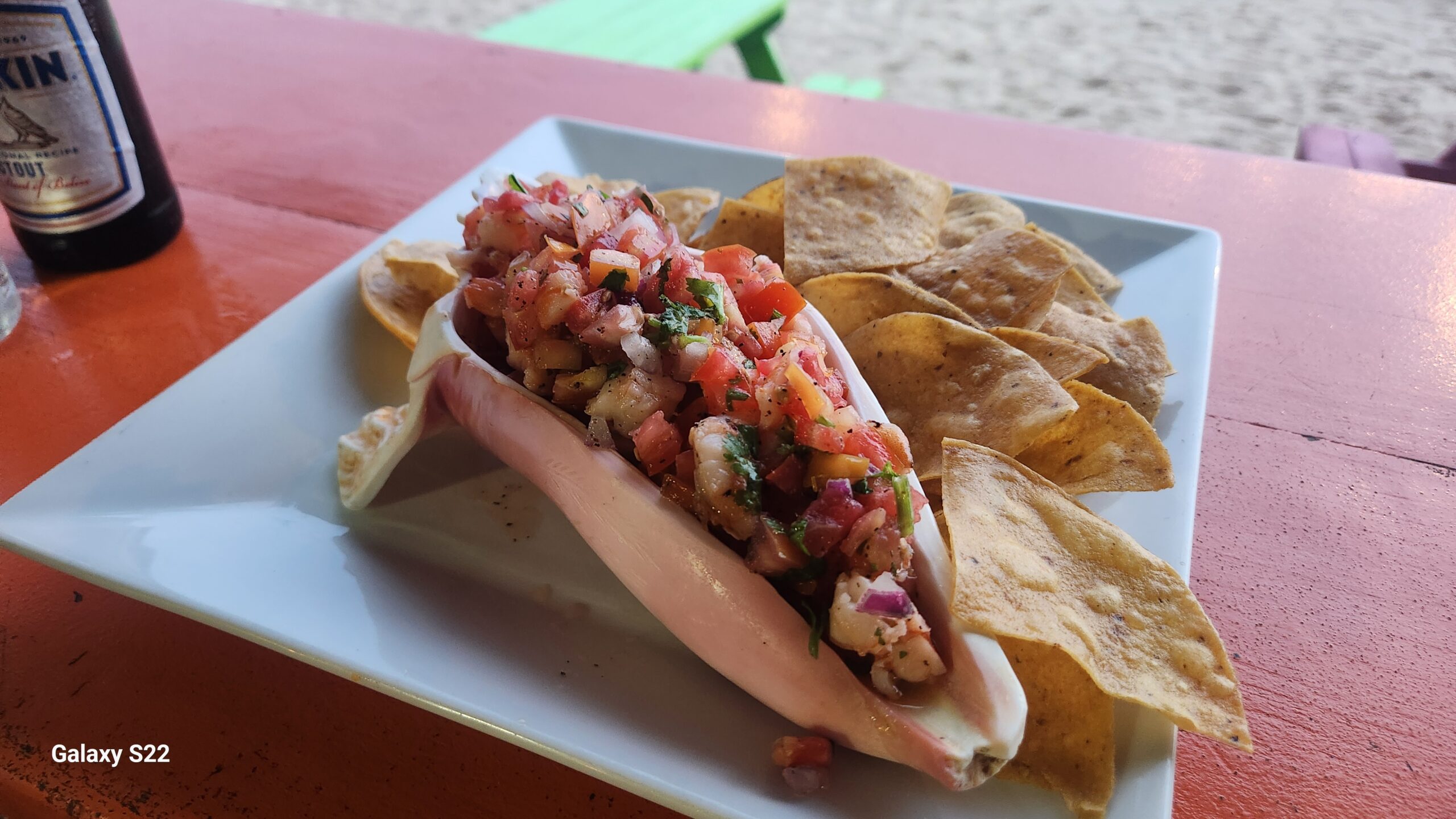 Mariposa Beach Resort is a bit north in Placencia, almost to the airport. It’s a nice setting with a pool overlooking the beach. I went there to try the ceviche on the recommendation of Chef Myra, and she was right, it was one of the best in Placencia! The presentation was unique with the whole shrimp and the julienne veggies. Extra points awarded for the plantain chips served along with the typical tortilla chips.