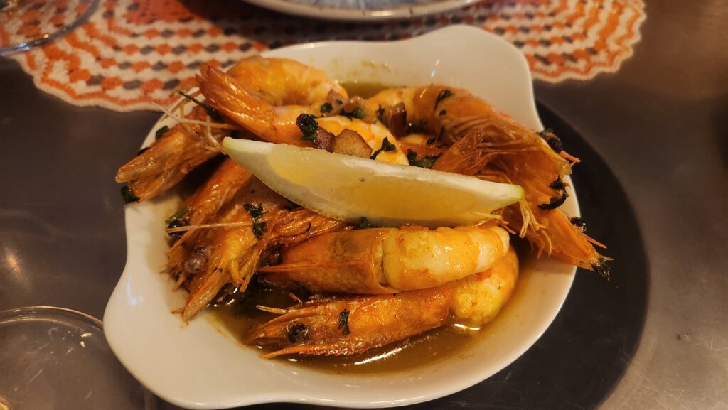 Wow! Get the daily specials for sure. We had calamar sauted with garlic and potaoes that was one of the best things I’ve ever tasted. The squid was so tender and the garlic had melted into the sauce like a confit. Seriously, click on the picture above and tell me if it doesn’t make your mouth water! The other special was fried sardinhas that were perfectly crisp and served over marinated peppers. Also outstanding! The tuna and swordfish ceviche was surprisingly raw (if only we had been warned!) with the perfect balance of citrus and spice–including cilantro. Finally, the camarão em azeite e alho was indeed looking at us, and the olive oil and garlic sauce was so good that we had to add on an order of bread to soak it all up.