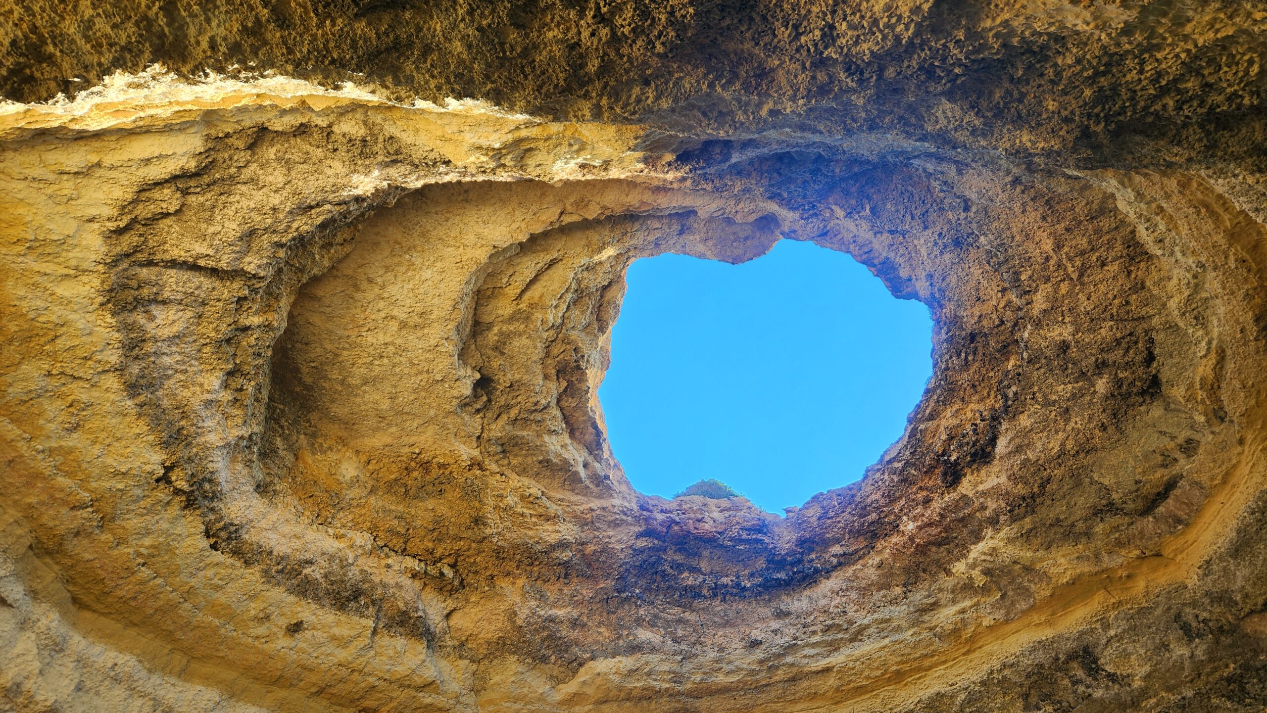 The cave in the picture to the right is perhaps the most famous–the Algar de Benagil. This is the iconic cave you see featured in many photos of the region. Many of the caves in the Algarve have a daylight hole or a “window to the sky” that lets in light and adds to the overall beauty.